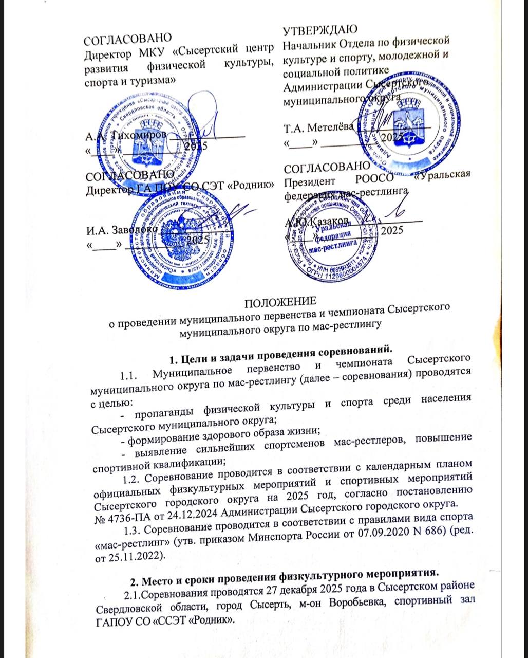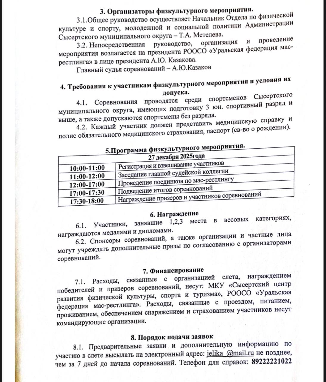 Положение соревнований прилагаются.