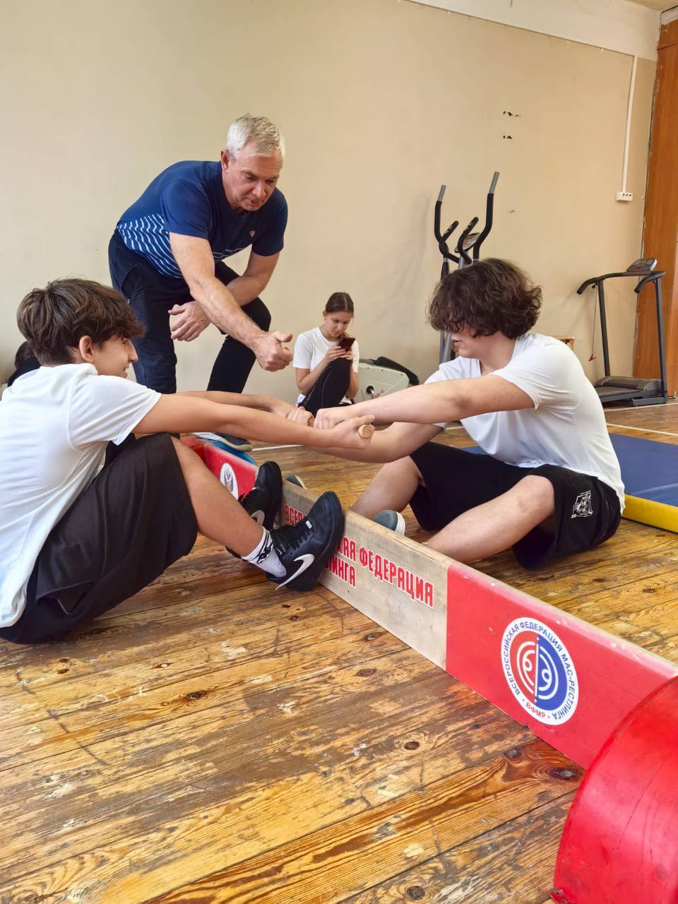 Под непосредственным руководством 1-го вице-президента Федерации мас-рестлинга Московской области Александра Лебеденко учающиеся Гимназия № 56 г.о. Люберцы знакомятся с национальным видом спорта России и пробуют свои силы на практике!