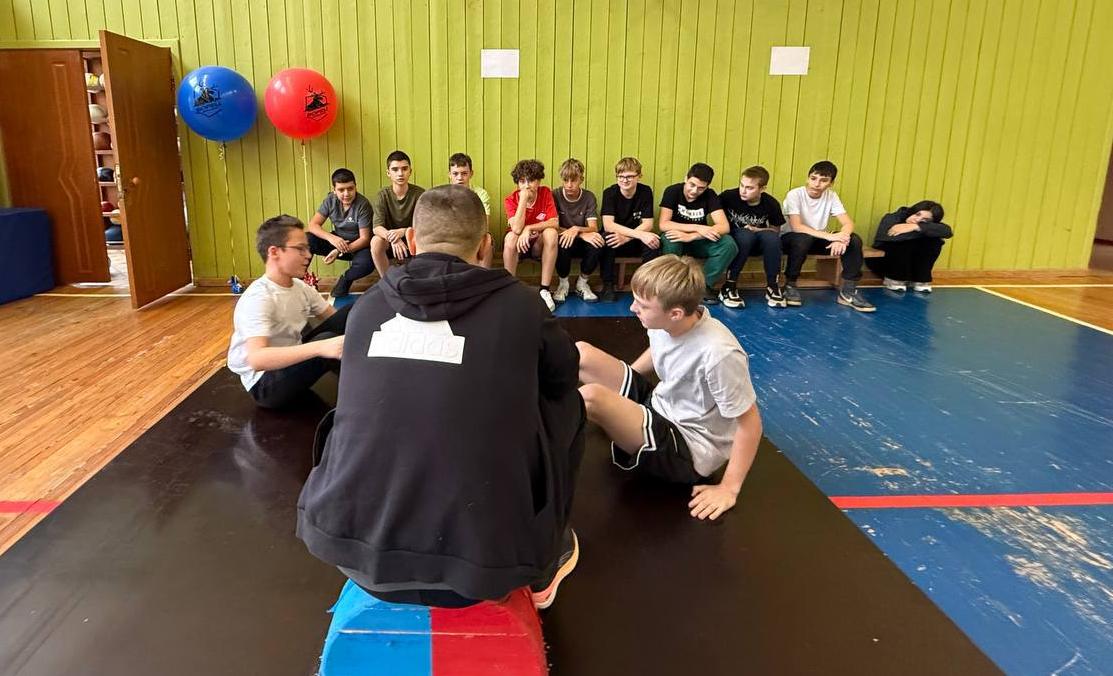 Для начала он познакомил ребят с мас-рестлингом, рассказал об его истории, правилах этого вида спорта, технических приемах, после чего каждый участник попробовал себя на помосте в поединке!