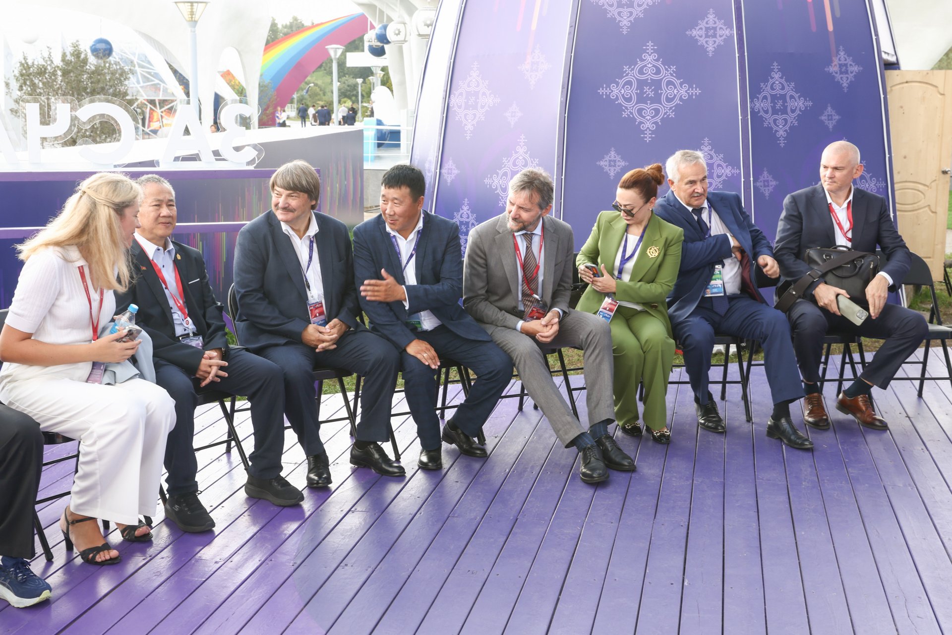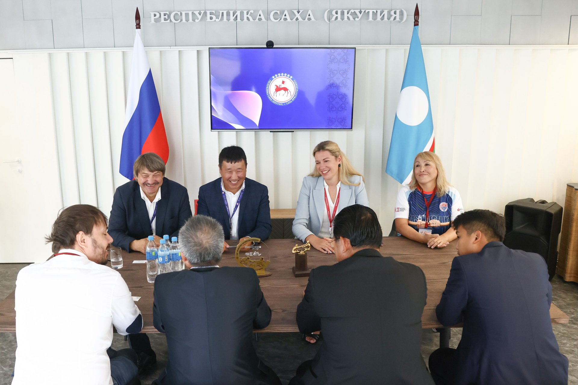 С участниками турнира в павильоне Республики Саха (Якутия) встретился премьер-министр Монголии Гомбожавын Занданшатар.