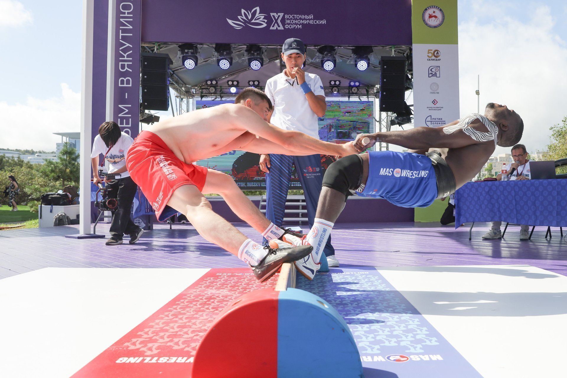 Спортсмены из 14 стран приняли участие в турнире Кубок «АК Железные дороги Якутии» по мас-рестлингу, который прошел в рамках Спортивных игр Восточного экономического форума во Владивостоке. Организатор ВЭФ – Фонд Росконгресс.