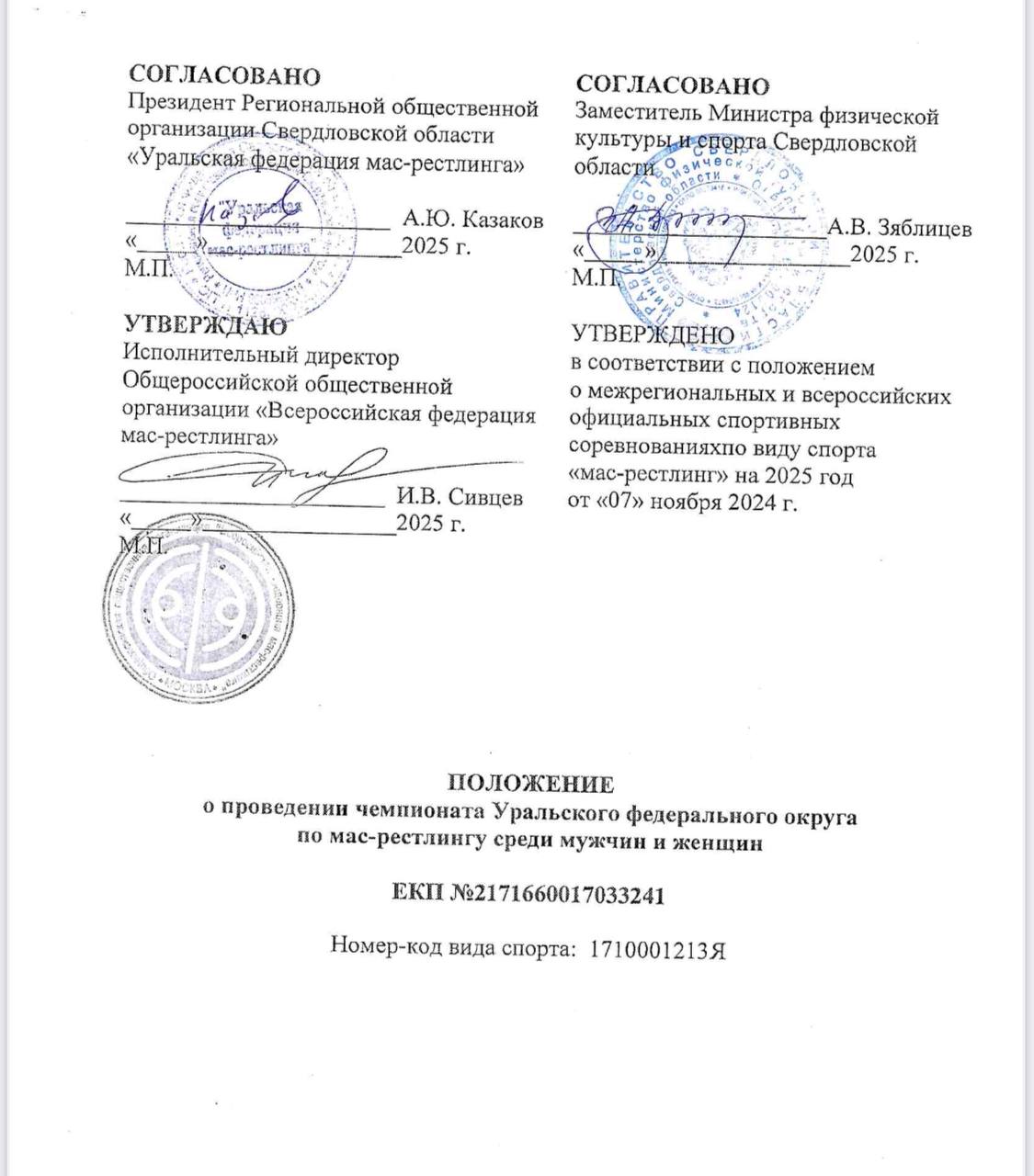 ПОЛОЖЕНИЕ о проведении Чемпионата и Первенства Уральского федерального округа по мас-рестлингу. см в приложении.