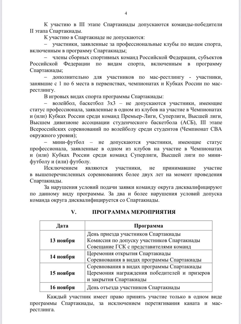 В рамках спортивной программы состоится спартакиада с разнообразными состязаниями: баскетбольные и волейбольные матчи, выполнение нормативов ГТО, перетягивание каната, мас‑рестлинг и другие спортивные мероприятия.