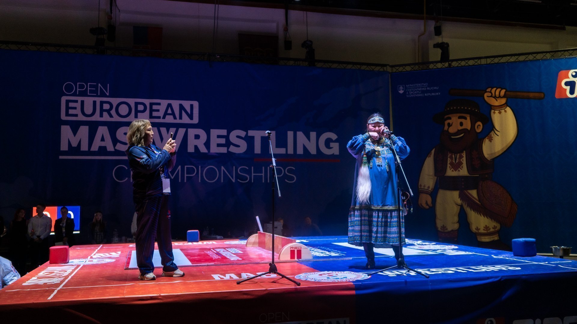Первым приветственное слово взял хозяин, президент Словацкой ассоциации мас-рестлинга Ян Матей. Он открыл европейский чемпионат, после чего прозвучал гимн Словацкой Республики в живом исполнении. Все присутствующие стоя замерли под нежные и торжественные звуки скрипки, которые легко летели под сводами большого зала, заставляя каждого по-особому прочувствовать величие патриотической музыкальной композиции.