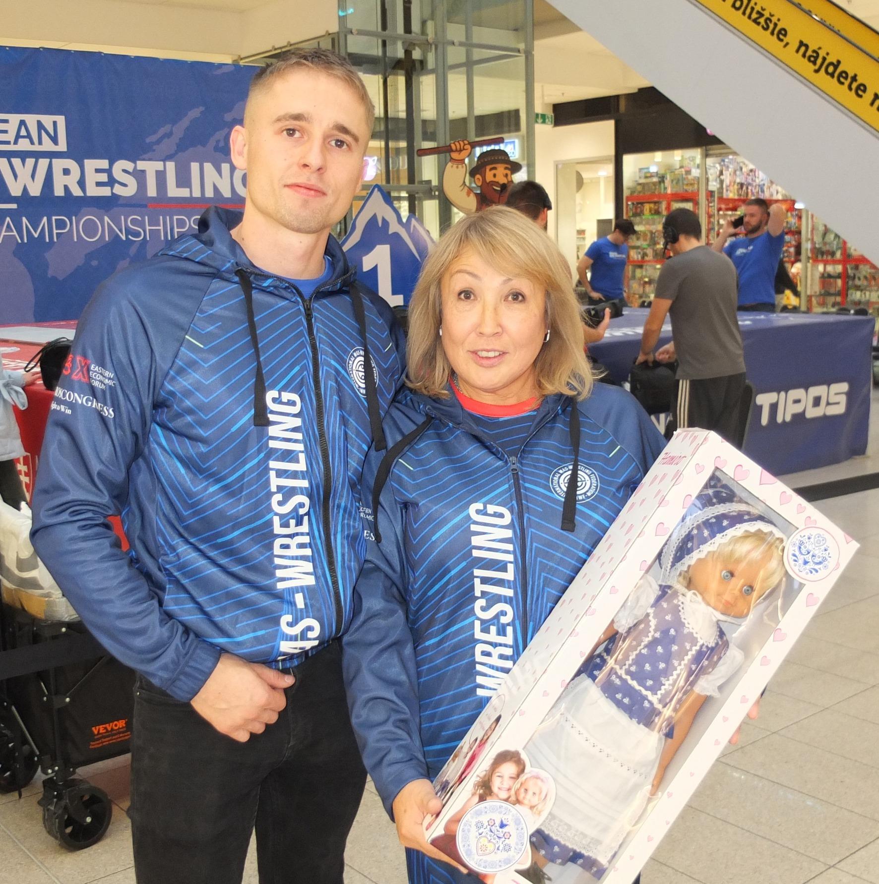 Для розыгрыша лотереи среди публики национальные федерации мас-рестлинга предоставили свои сувениры, связанные с бытом и культурой их стран. Так, посетителям торгового комплекса посчастливилось стать обладателями уникальных изделий. Кыргызский головной убор «ак калпак» из белого войлока – символ и гордость кочевого народа, куклу в мексиканской национальной одежде и шоколад с острыми специями в напоминание о том, что Родина кофе и перца – Мексика, кружку с изображением столицы Чехии – города Праги, красивую стопочку с характерными волнообразными узорами, которые выкладывают на мостовых в Рио-де-Жанейро вручили представители стран.