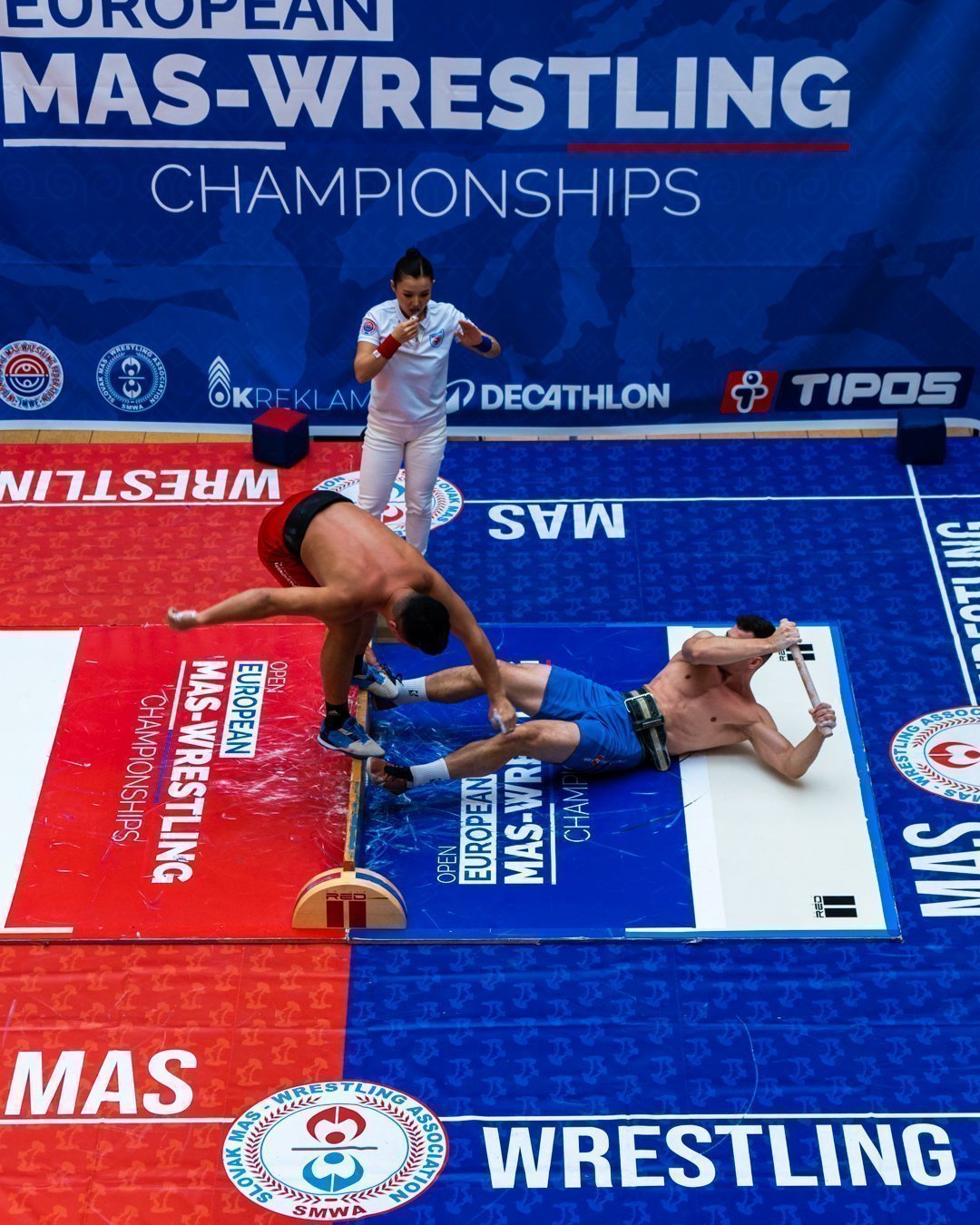 Дважды в этот день прозвучал государственный гимн России в честь абсолютных чемпионов Европы в мужских категориях. Безоговорочную победу над всеми достойными соперниками одержал Павел Черноградский и Республики Саха (Якутия). В супертяжелой категории калужанин Иван Галкин поднялся на недосягаемую высоту, одолев сильнейших кыргызских батыров. Он оформил личный дубль в Банска Быстрице. Как мы помним, подобный подвиг совершил ранее Эрчим Баппагай на континентальном первенстве 2023 года в Словакии. Примечательно, что оба триумфатора - Павел Черноградский и Иван Галкин являются заслуженными мастерами спорта России по мас-рестлингу и сегодня получили в качестве приза якутские ножи, которые любезно предоставил заслуженный мастер спорта, самый титулованный мас-рестлер мира Дмитрий Попов. Все логично – лучшее лучшим.