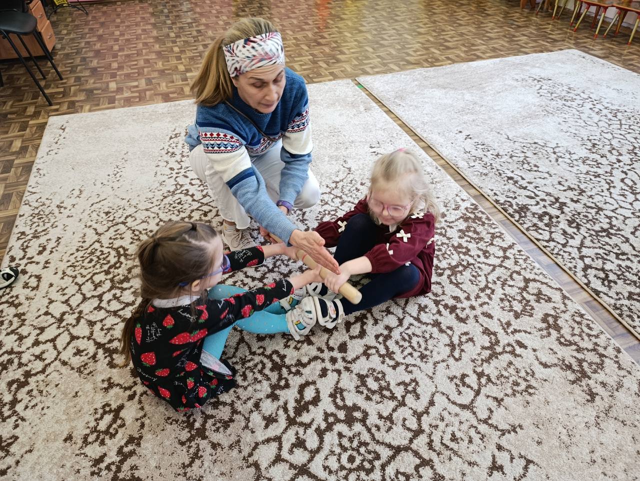 Центральным событием стало знакомство с мас- рестлингом - национальным видом спорта, который постепенно завоевывает весь мир. Изучаем правила состязаний, приобрели палку для мас-рестлинга, учимся разным захватам, пробуем свои силы в первых поединках, дружно скандируем "Бэлэм! Чэ!". Эта фраза сразу вошла у детей в активный словарь и запомнилась практически с первого раза.
