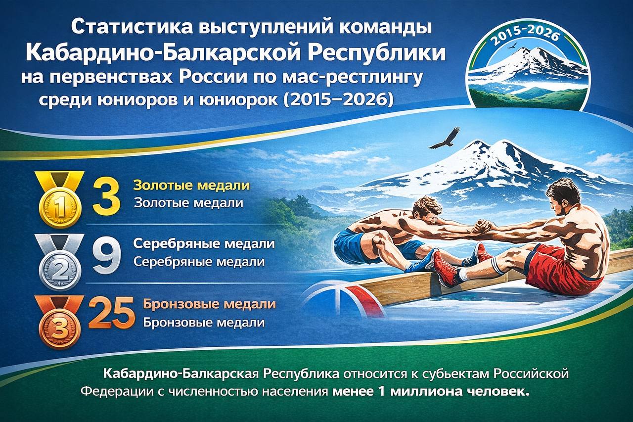 Согласно официальным статистическим данным за 2015–2026 годы, у Федерации мас-рестлинга Кабардино-Балкарской Республики выдающиеся показатели.