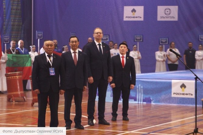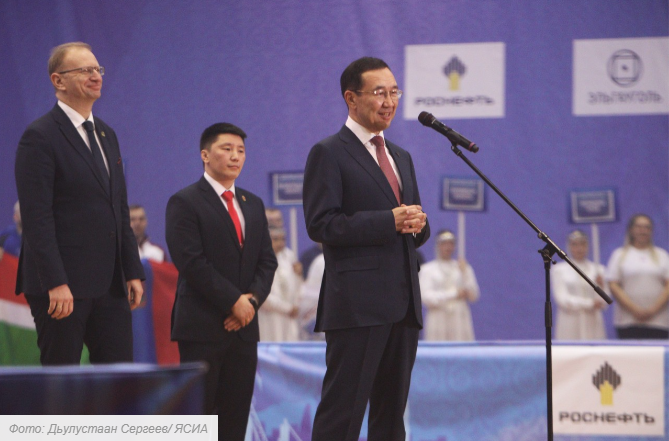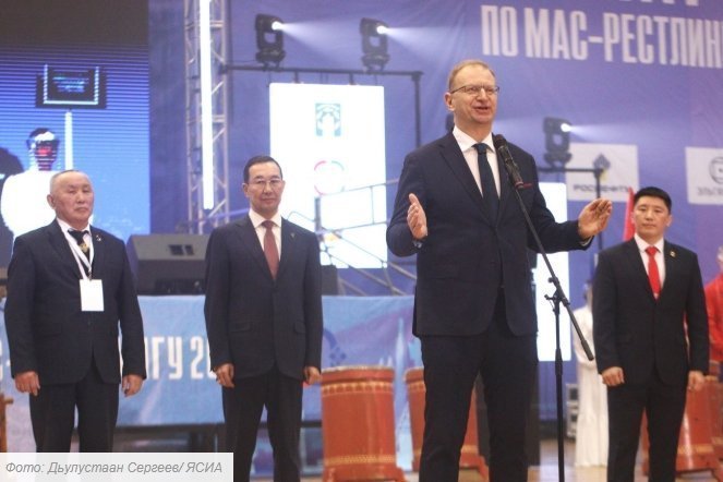 Я рад, что сегодня Нерюнгри принимает этот праздник спорта. Десять лет назад наш президент Владимир Путин сказал, что национальные виды спорта должны продвигаться на уровень Олимпийских игр, чемпионатов России, международных соревнований. Я благодарю министерство спорта, Олимпийский комитет, Комитет по национальным и неолимпийским видам спорта. Мас-рестлинг — это вид, который пришел к нам с незапамятных времен, передан нашими предками. Сегодня он культивируется в 109 странах мира, 60 с лишним стран являются членами Международной Федерации мас-рестлинга. Это прекрасный спорт сильных и мужественных людей. Уверен, что здесь мы увидим замечательные схватки, которые будут проходить в честной бескомпромиссной борьбе», — сказал Айсен Николаев. Он также выразил уверенность, что победители этого соревнования достойно представят Россию на чемпионате мира, который в конце ноября проведут в Казани.